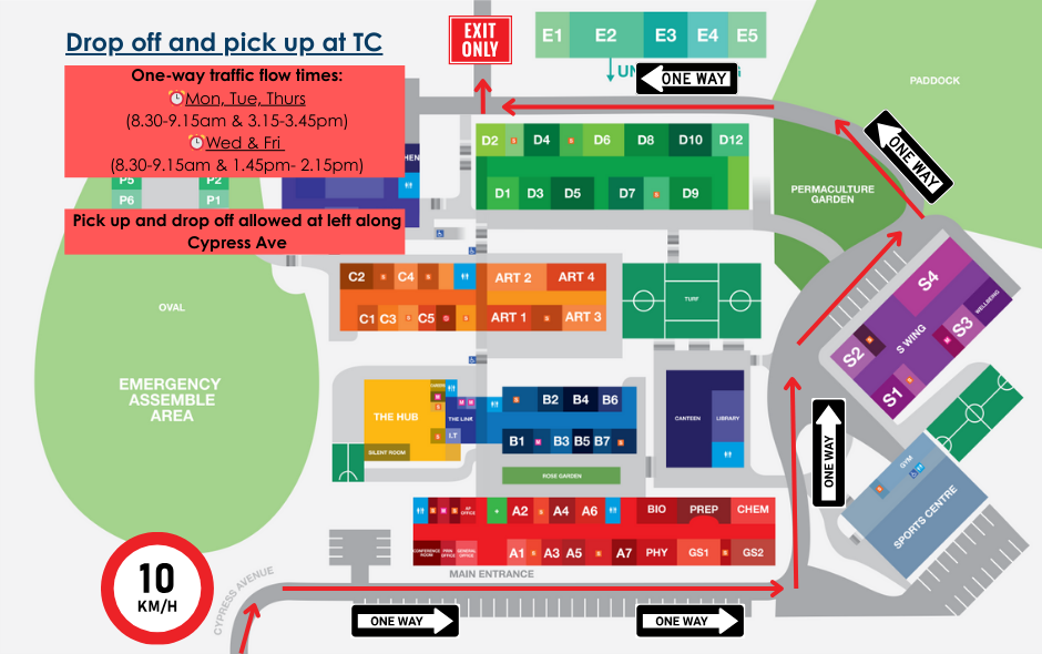 π Parking is available on the oval. Please note the rear exit of the school will be closed.
